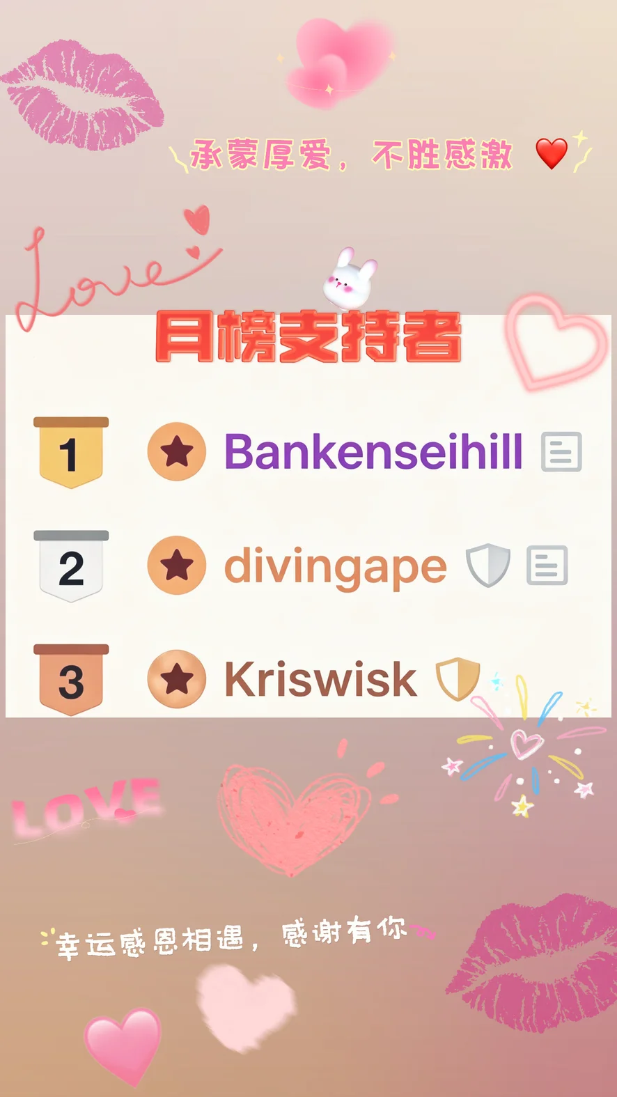 4月结束啦,很感谢哥哥们的支持,人海茫茫,幸运遇见